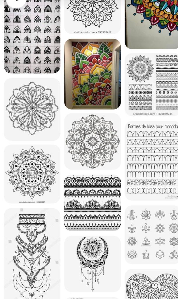 I really like Japanese patterns and designs. I especially love the colors and gold accents in the fabric. Even though I’m not really into geometric designs, I do enjoy mandalas and henna patterns as well.