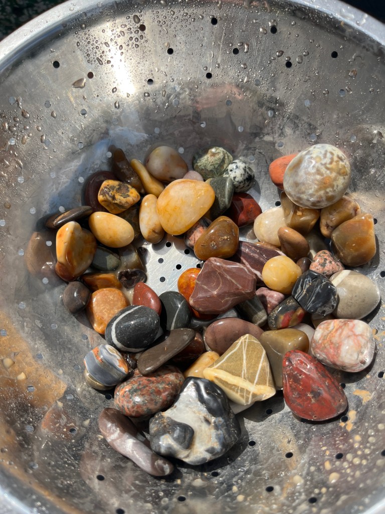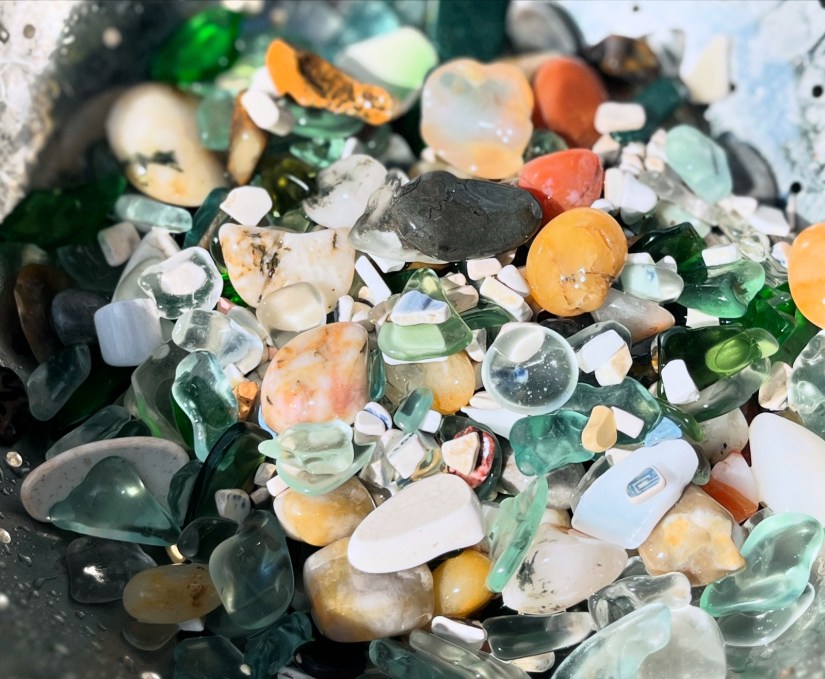 I grew up in Whitby, spending hours on the beach collecting pebbles, sea glass, shells, and fossils. I enjoyed exploring rock pools and finding tiny crabs and fish. I spent a lot of time outdoors, drawn to greens and blues, which I guess makes sense.